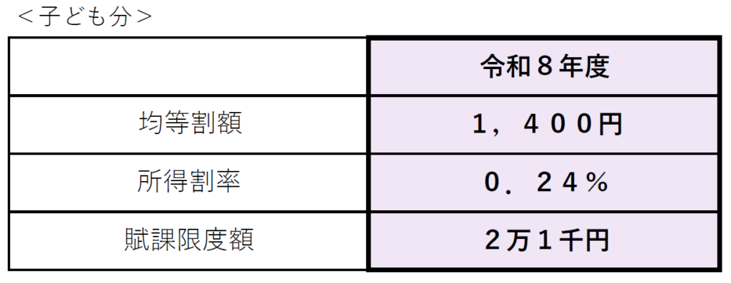 【令和8年度】 子ども分 所得割 0.24% 均等割 1,400円