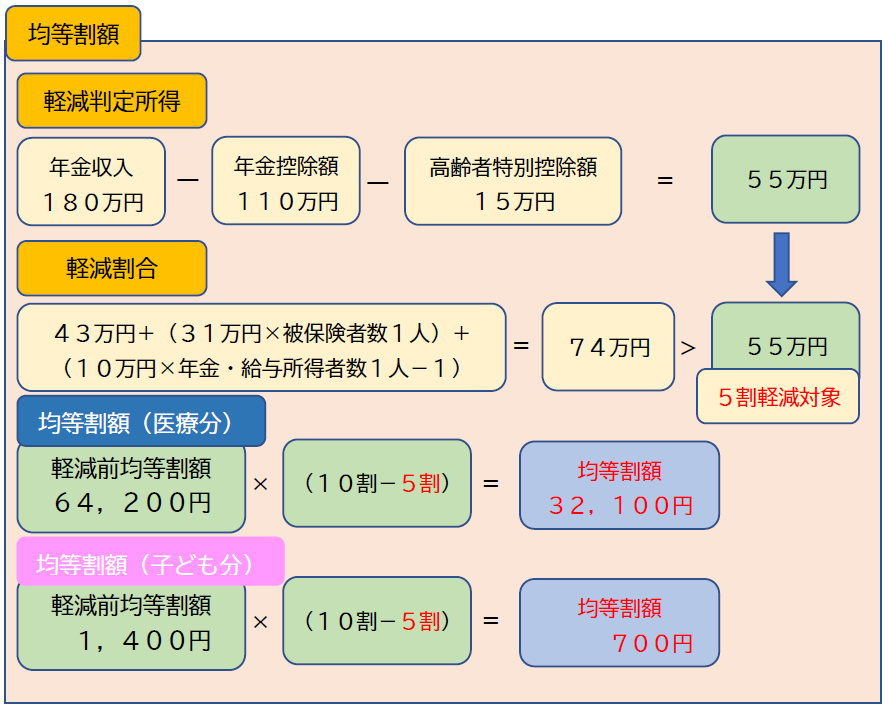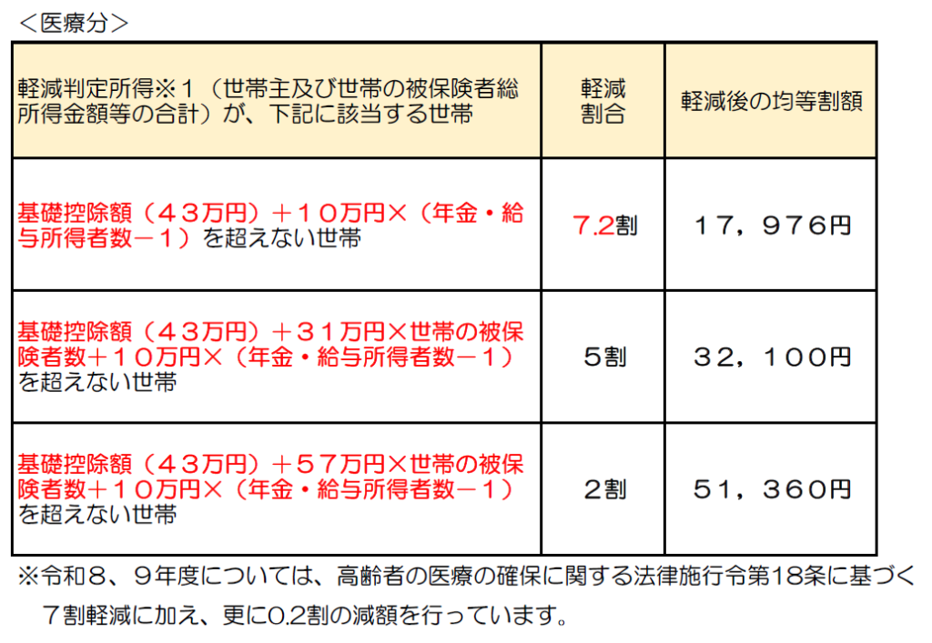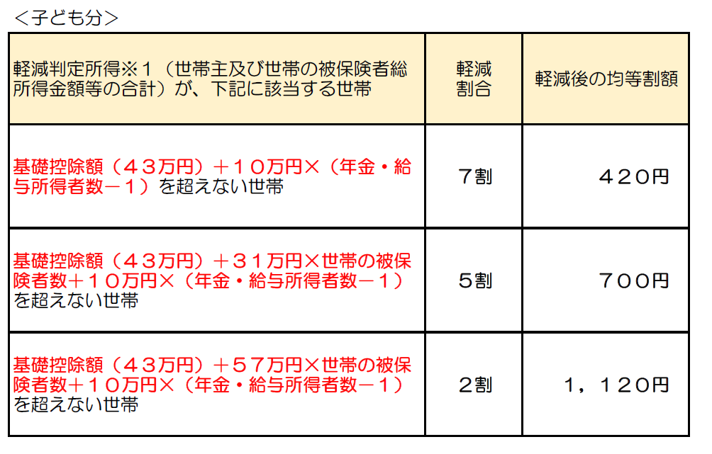 ただし、特別措置として、資格を取得してから2年を経過する月までは保険料の均等割額が5割軽減されます。(所得割額は課されません。)