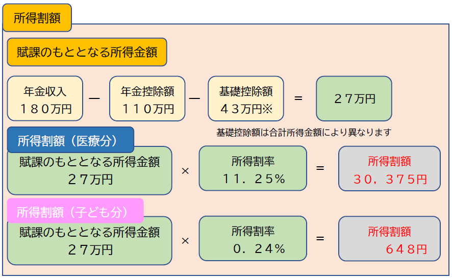 <被保険者で単身世帯の場合(本人の収入が年金収入180万円のみの場合)>